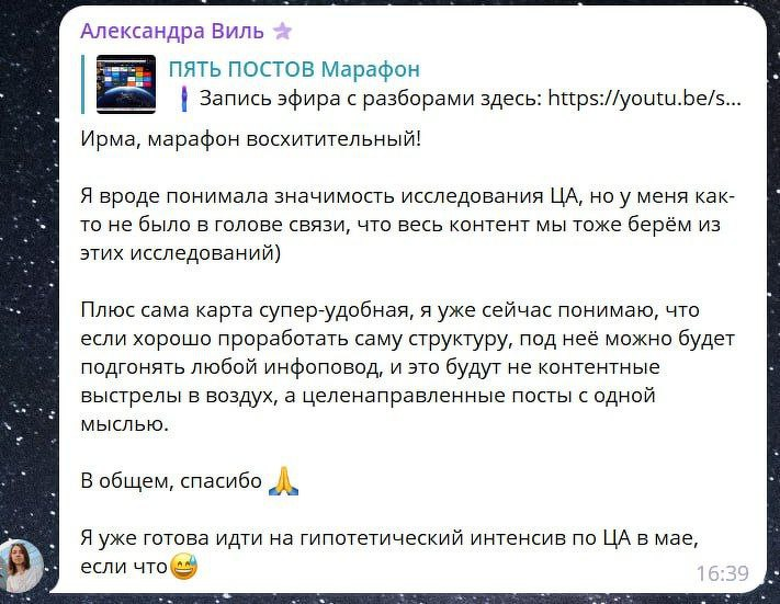 Чтобы добавить марафон «5 ПОСТОВ» к заказу, нажмите на кнопку ниже👇